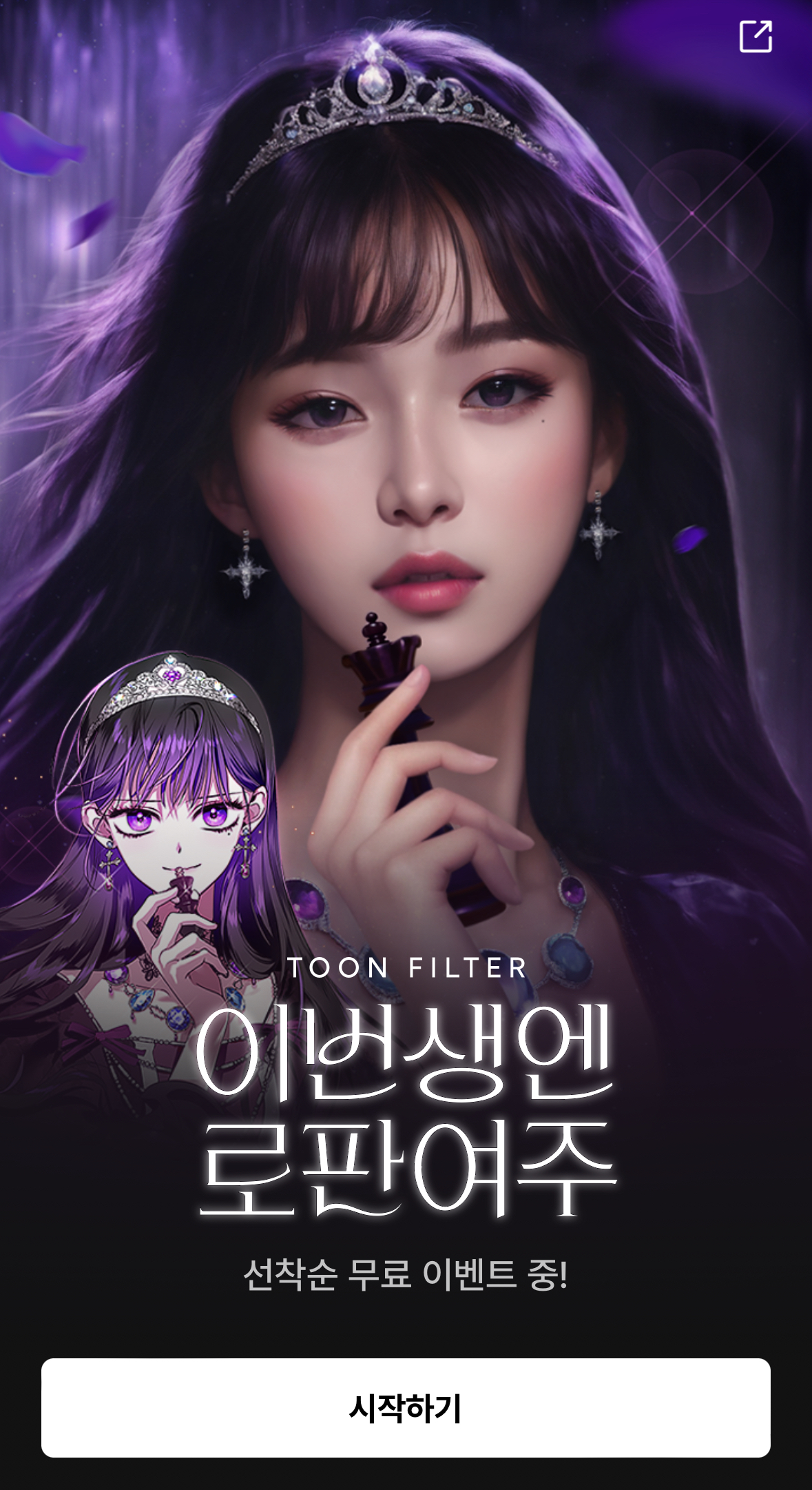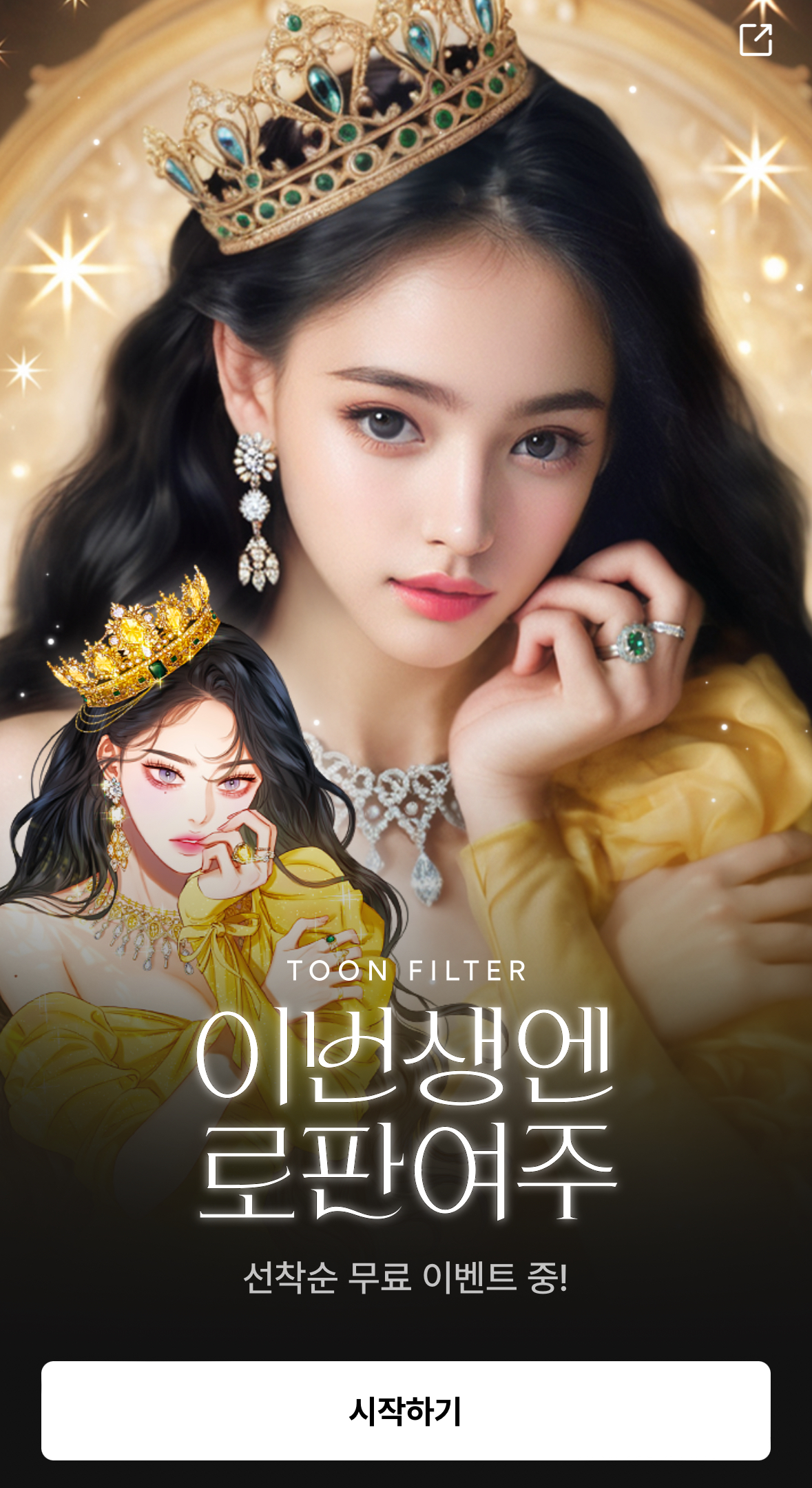 이번생엔 로판여주는 네이버웹툰 앱에서 진행하는 툰필터에요. 본인사진 12장을 올리면 로판여주인공으로 바꿔주는 신기한 AI필터랍니다.