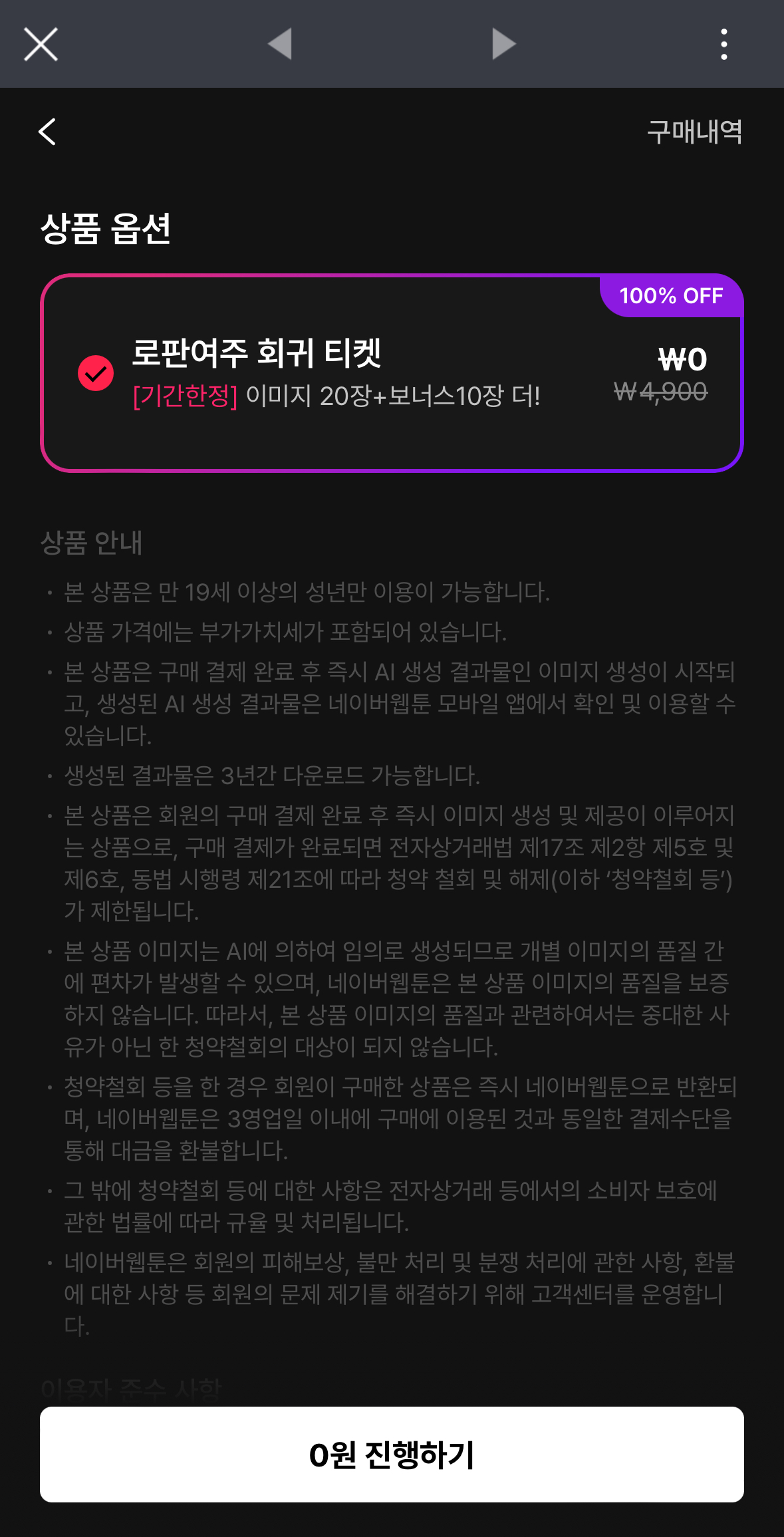 현재 네이버웹툰에서 무료로 진행하고 있기 때문에 비용은 0원입니다.