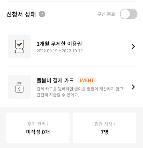 저는 시터를 구한하는 표시를 했어요