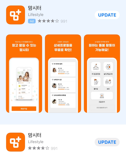 맘시터 어플이 꽤 유명해서