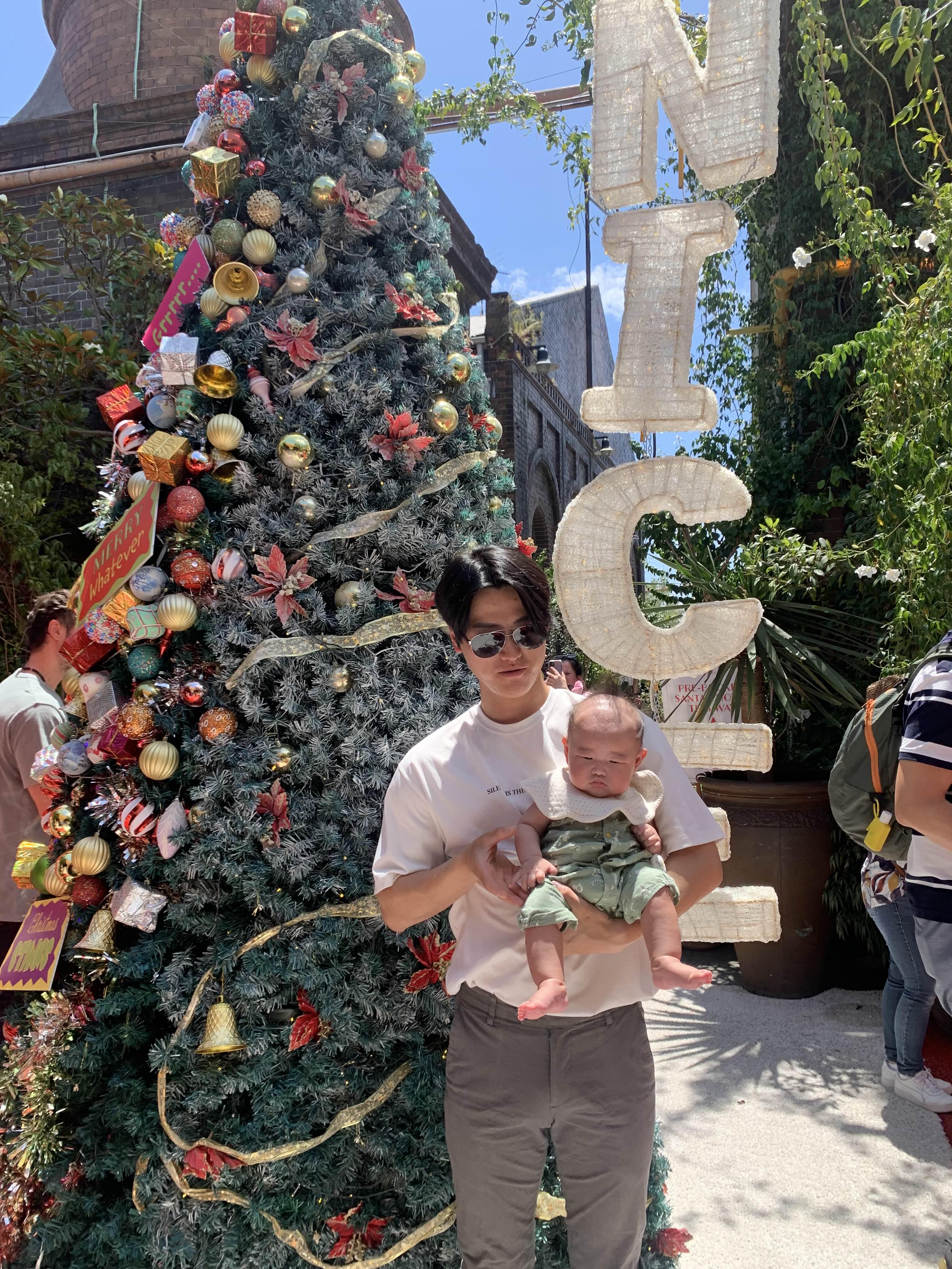 트리 앞에서 가족사진 👨👩👦