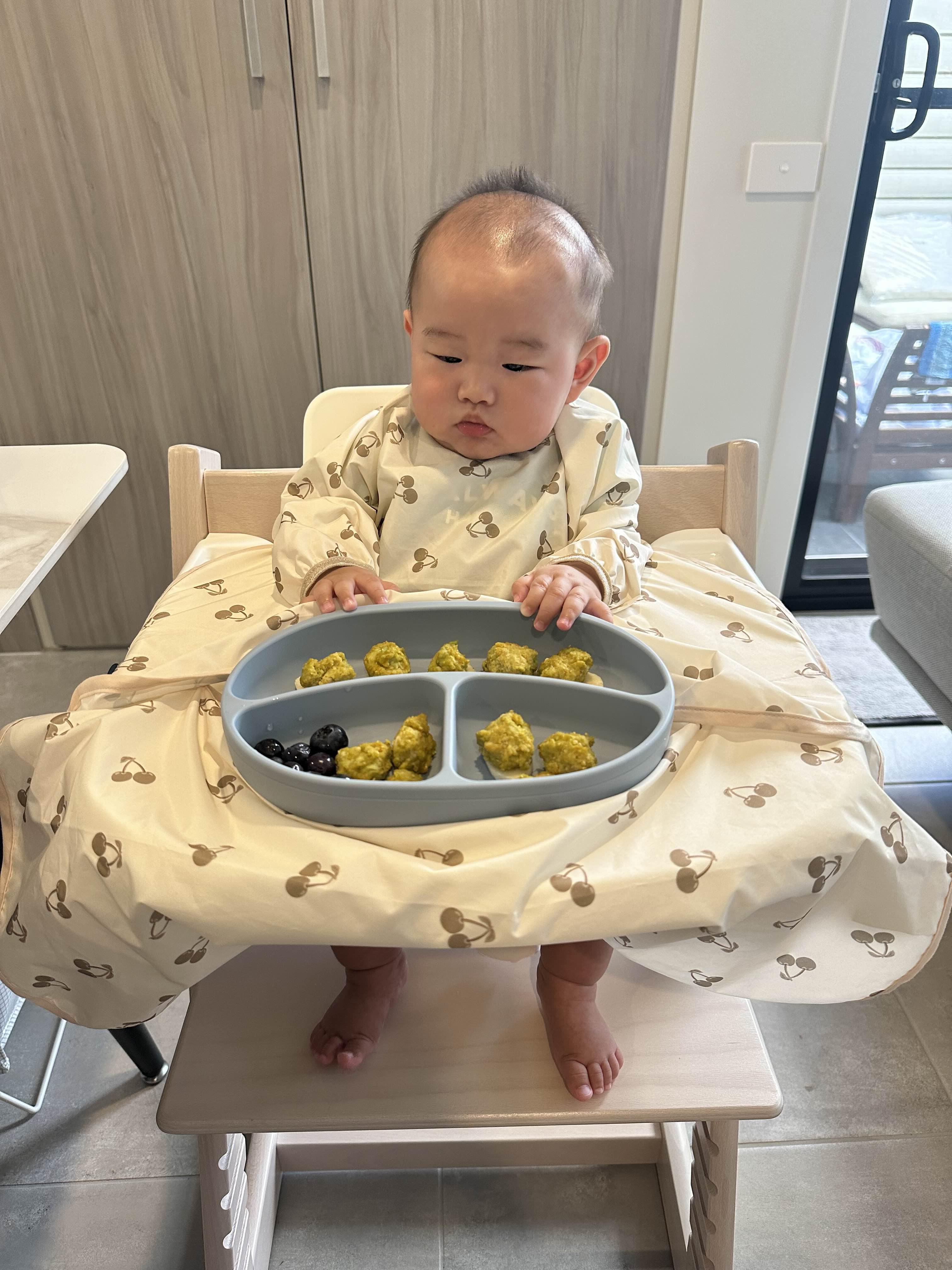 저는 책상에 고정해서 먹이는 것보단 아기 트레이에 놓고