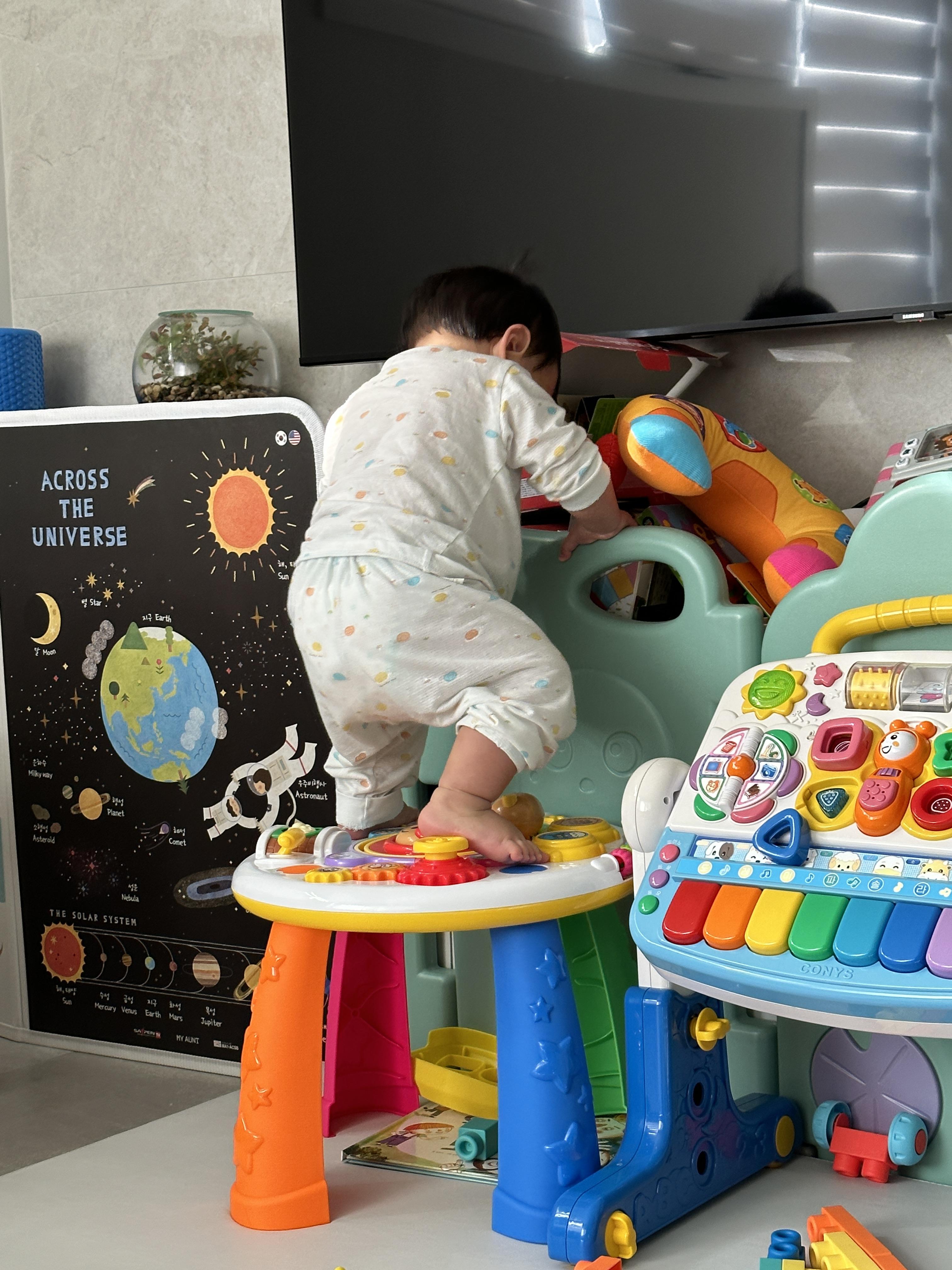 어느새 장난감 위에도 올라가고