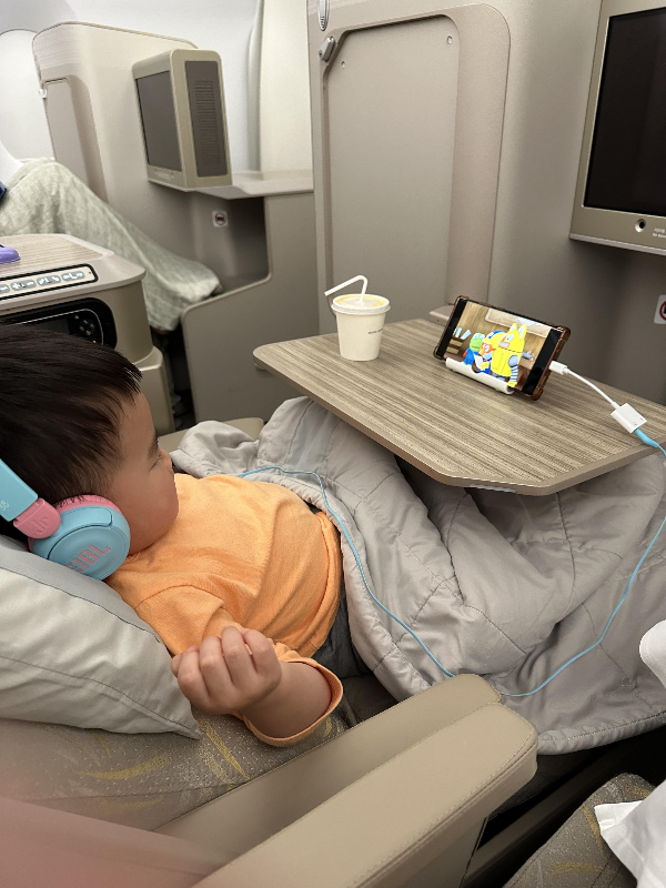 장거리 비행 시 아이와 함께라면 무엇보다도 서로 편안한 환경을 만드는 것이 중요한 것 같아요.