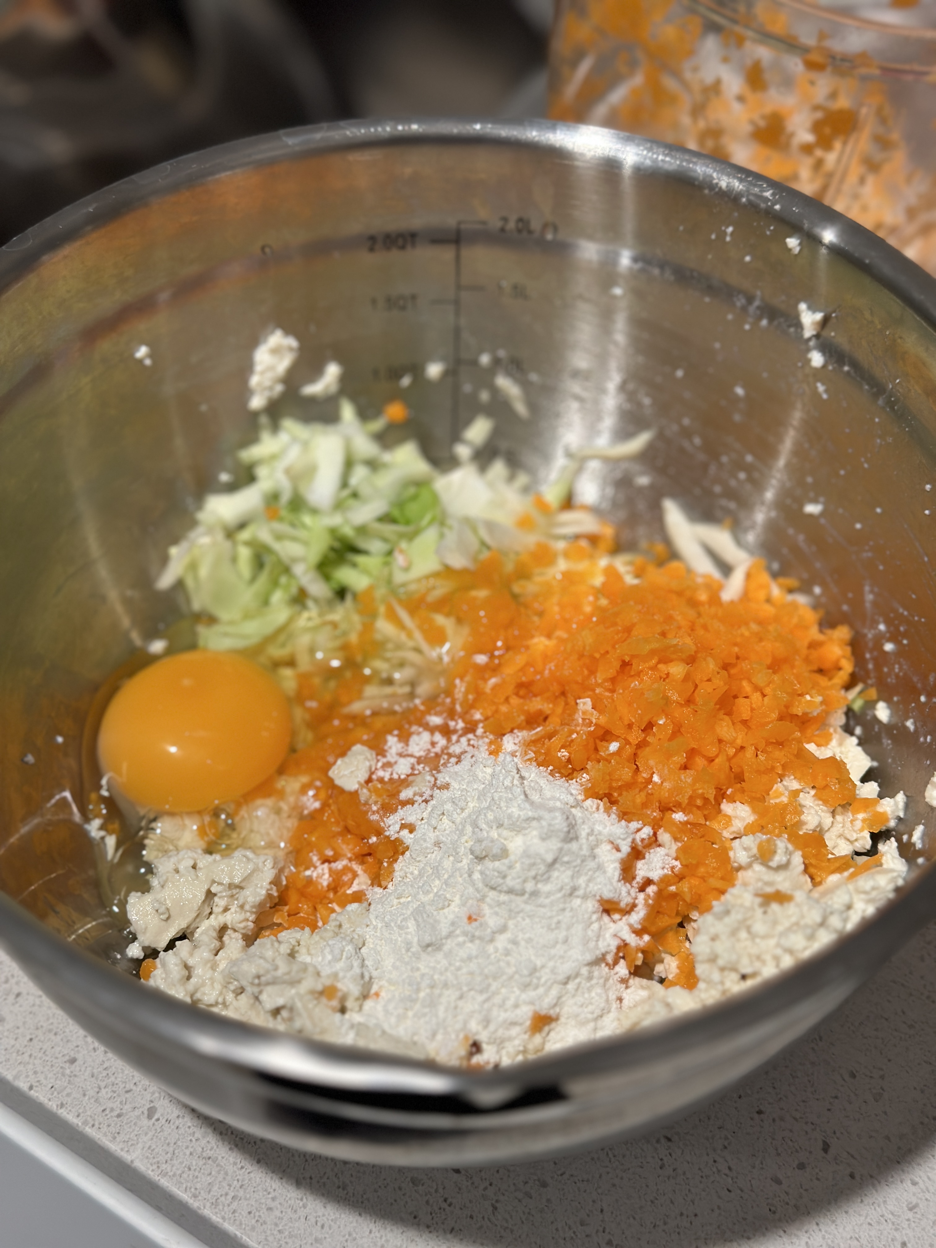 두부 당근 양배추 계란 튀김가루