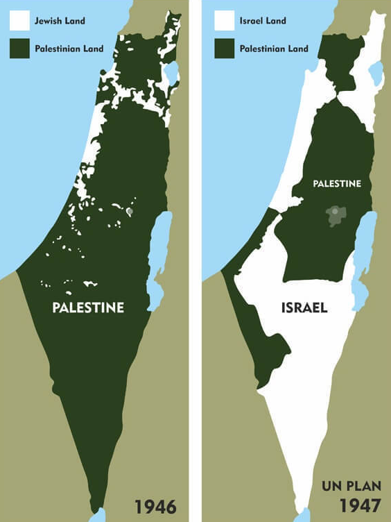 1947년 유엔 결의를 통해 팔레스타인 지역은 유태인 국가와