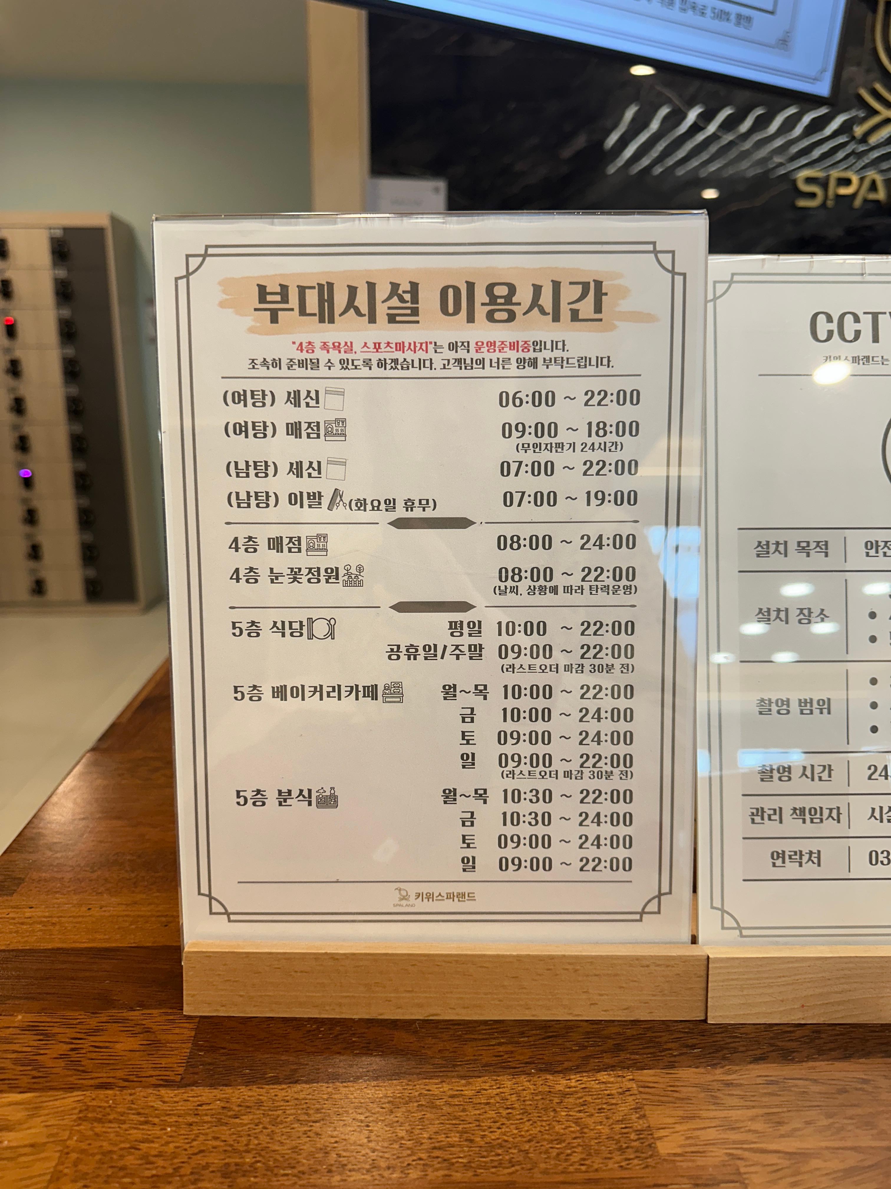 - 주요 시설: 사우나, 황토방/소금방/얼음방 등 찜질방, 수면실, 식당, 카페, 마사지샵, 피부관리실