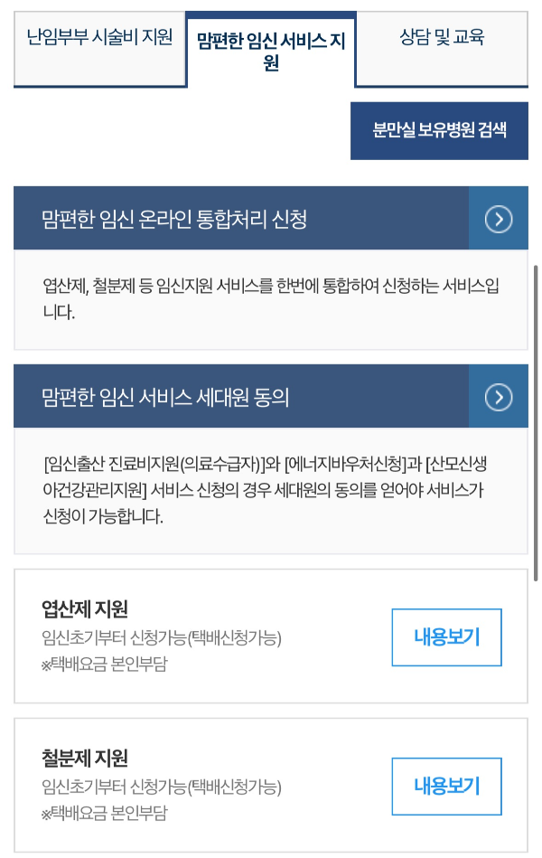 - 정부24시 맘편한 임신 서비스를 통해 통합 신청합니다.