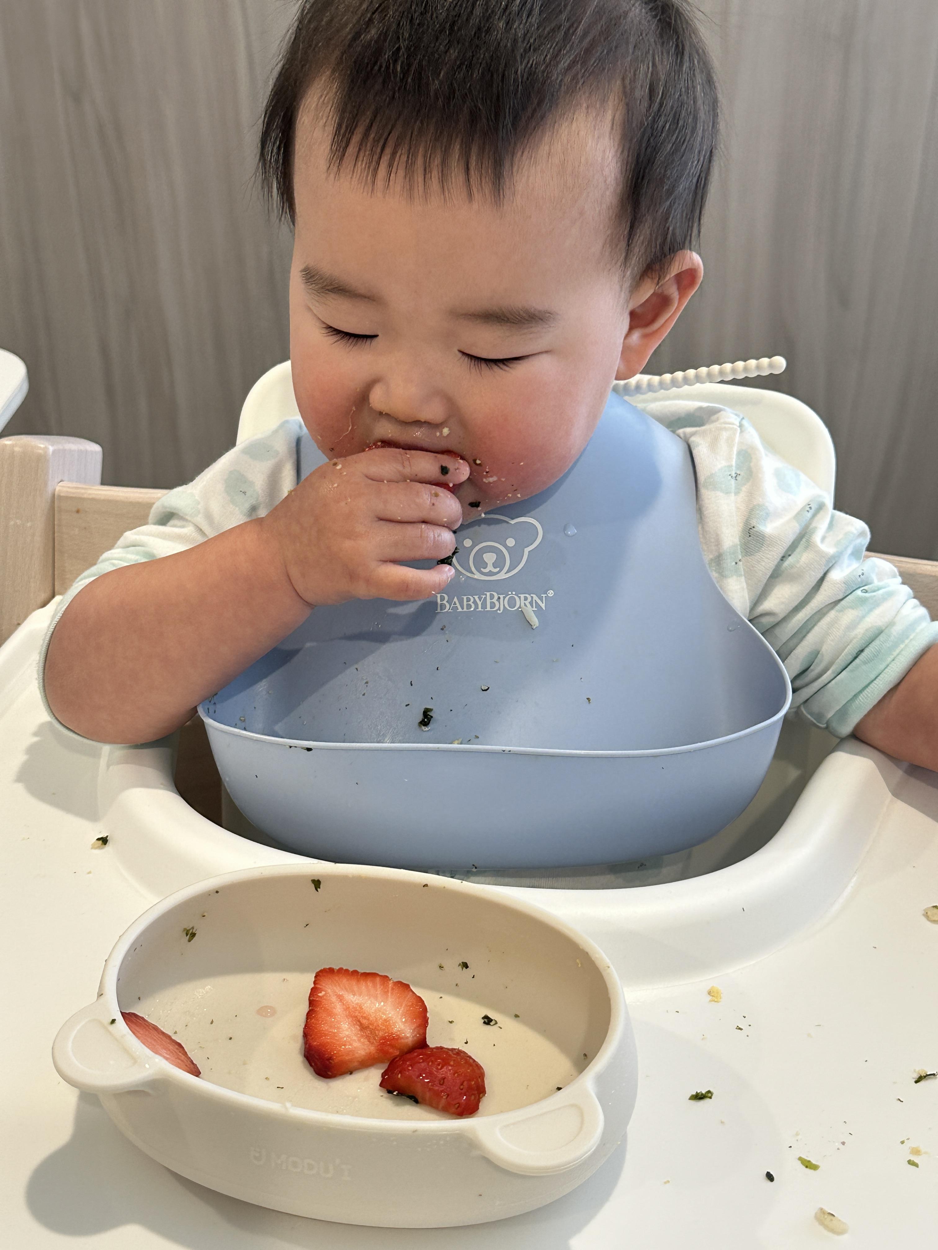자기 주도이유식 중인 마루 🥱 자기 주도이유식을 할지 말지 고민을 엄청 많이 했었어요 자기 주도이유식을 하는 가장 큰 이유는 손에 감각과 혼자서도 할 수 있는걸 빨리 터득하기 위한 건데..
