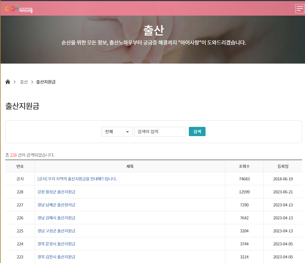 출산 > 출산지원금을 누릅니다