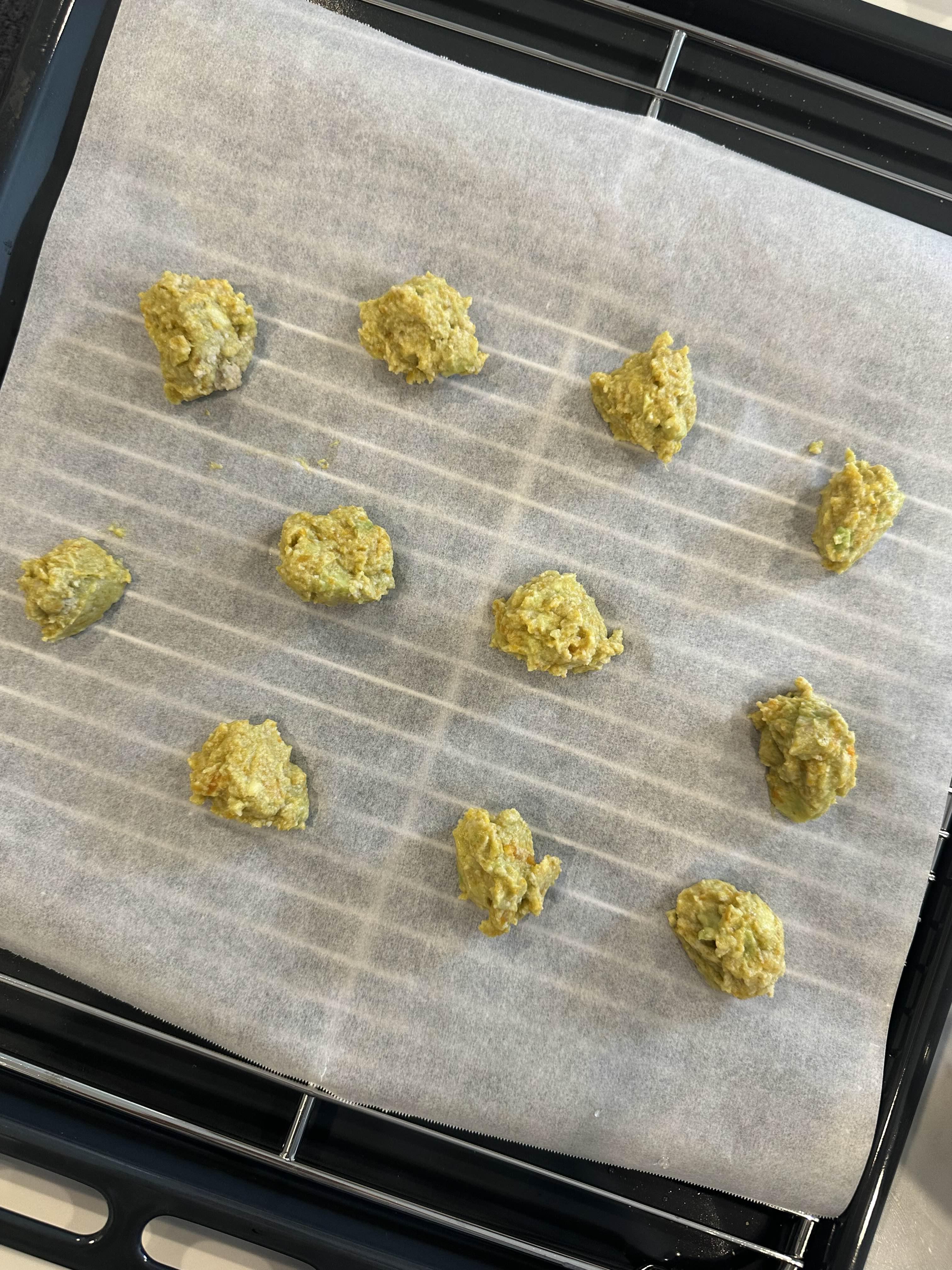 작게 만든 뒤에 오븐판에 놓고 구워요