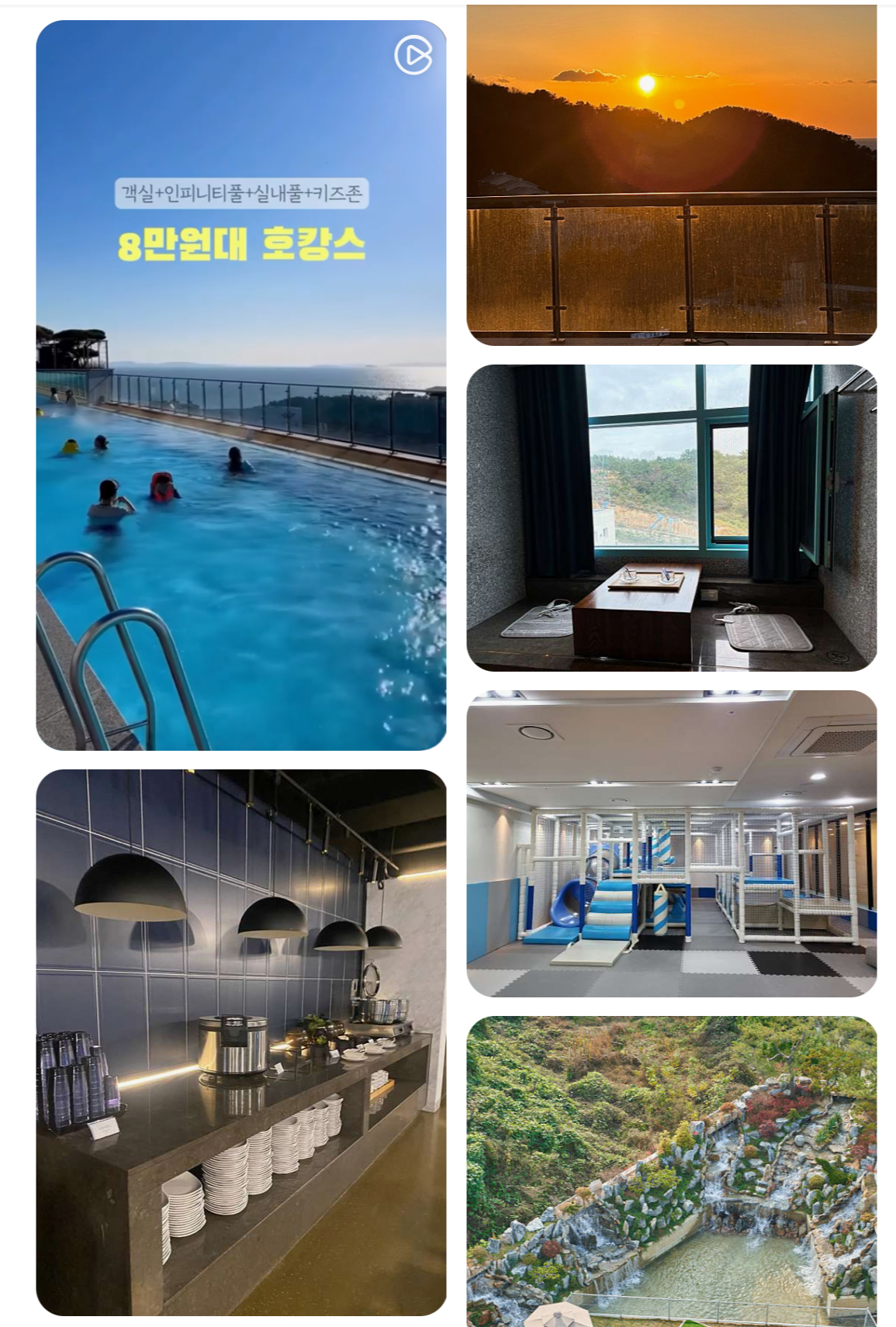 - 어린이 전용 놀이 공간과 실내·외 수영장이 있어 만족도 높음
