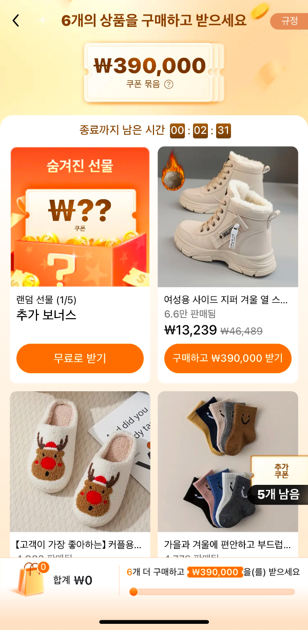 39만원 쿠폰팩을 받으려면 조건이 있습니다.