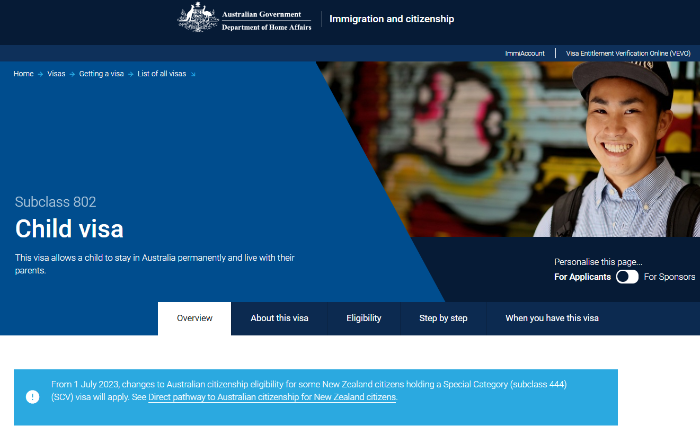 호주에서 이미 거주 중인 임시 비자 소지자의 자녀에 대한 영주권을 신청하는 경우 해당됩니다.