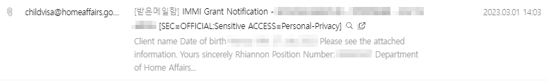 신청이 접수되면 호주 이민국에서는 신청을 평가하고 처리합니다. 추가서류가 있을 시에 메일로 통보를 하고 기절이 될 경우 사유와 함께 통보되니 메일을 잘 확인해야 합니다.