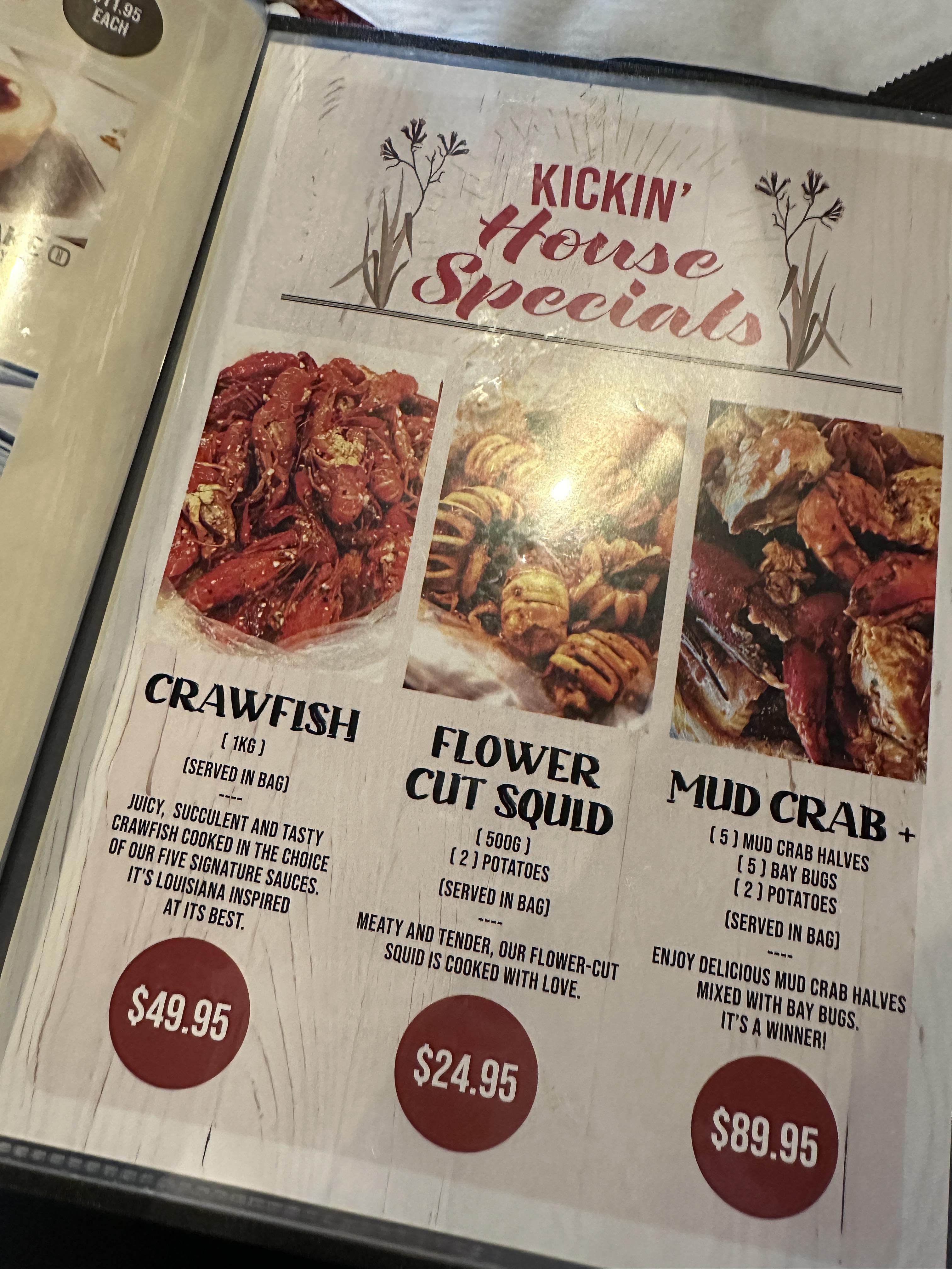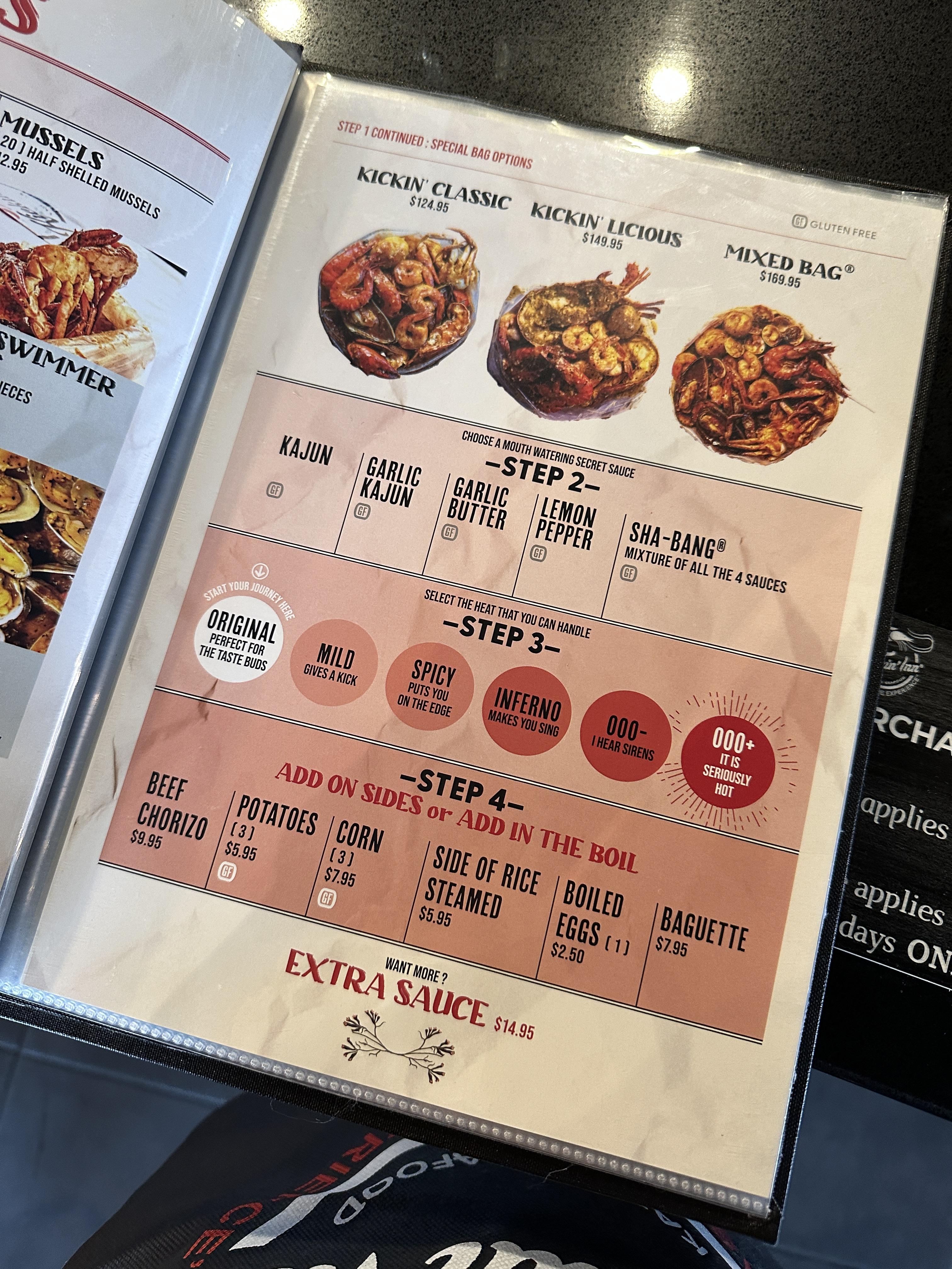 Kickin' Inn 은 여러 해산물을 한 봉지에 넣고