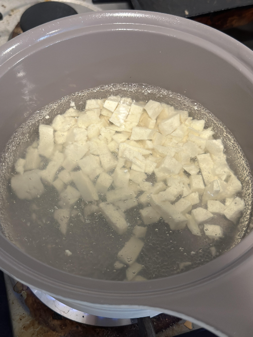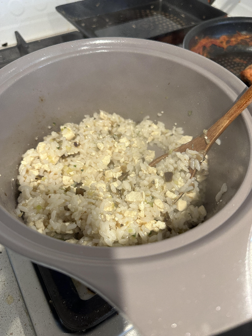 아까 끓인 두부를 넣고 이후 밥이랑 함께 볶아줍니다