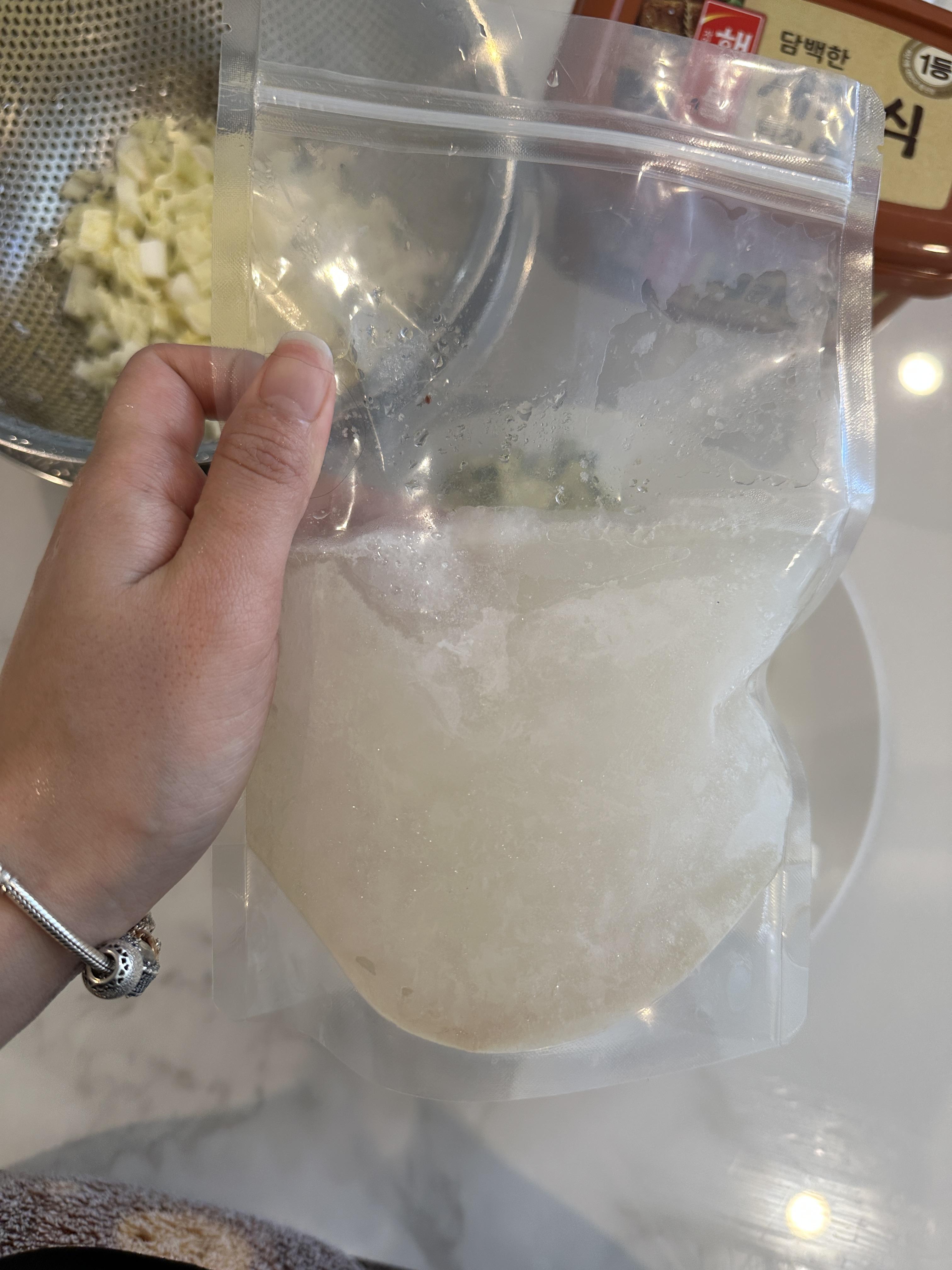 저는 미리 얼려놓은 소고기 육수를 사용했어요