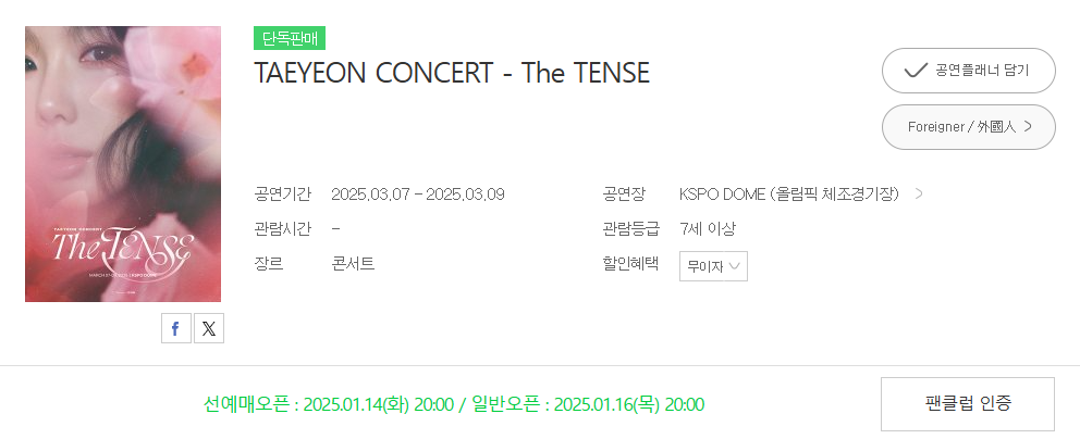 2025 태연 콘서트 'The TENSE' 서울 티켓 예매 정보